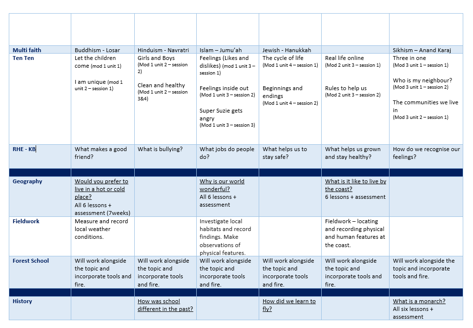 Click on the link to view what we will be learning about across the curriculum in Year 2.